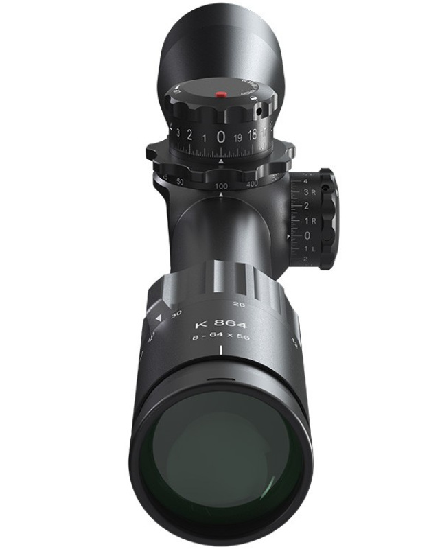 Mit einem bis zu 64% erweitertertem Sehfeld m Vergleich zum bewährten Vorgängermodell K1050 bietet der K864 das größte Sehfeld in der heutigen Klasse hochvergrößernder Zielfernrohre in der zweiten Bildebene.